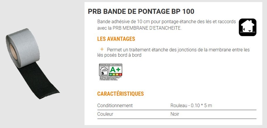 Bande adhésive de 10 cm pour pontage étanche des lés et raccords avec la MEMBRANE D’ETANCHEITE.
