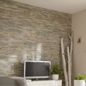 Parement en pierre naturelle quartzite mélangé allant du gris au rose