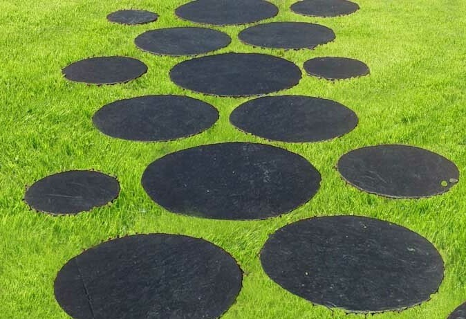 Le pas japonais en ardoise ronde est une solution durable, esthétique et pratique pour aménager des allées de jardin avec élégance.